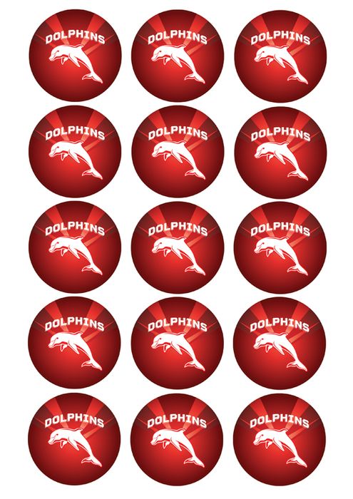 NRL DOLPHINS 2 INCH/5CM CUPCAKE IMAGE SHEET - 15 PER SHEET