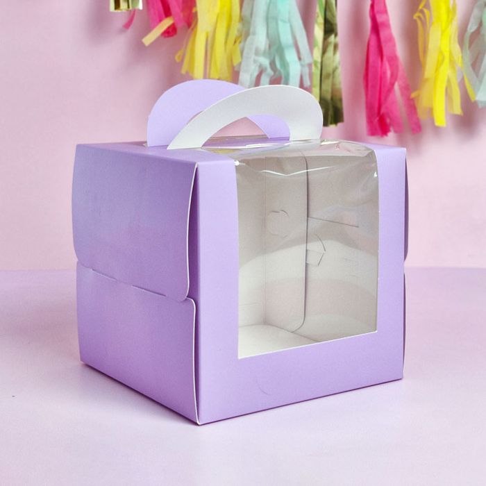 CAKE CRAFT | LILAC | 6.2X6.2X5.9 INCH | TOP HANDLE WINDOW CAKE BOX | RETAIL PACK