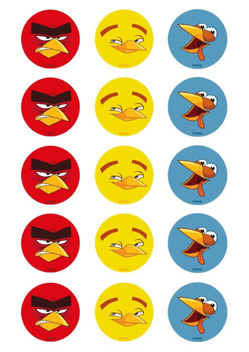 ANGRY BIRDS - 2 INCH/5CM CUPCAKE IMAGE SHEET - 15 PER SHEET