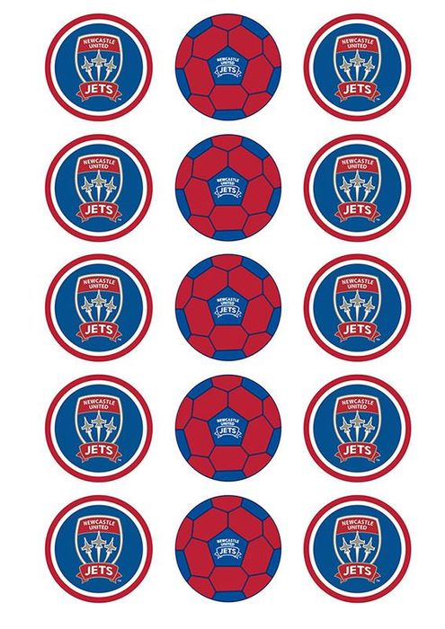 A-LEAGUE NEWCASTLE JETS FC 2 INCH/5CM CUPCAKE IMAGE SHEET - 15 PER SHEET