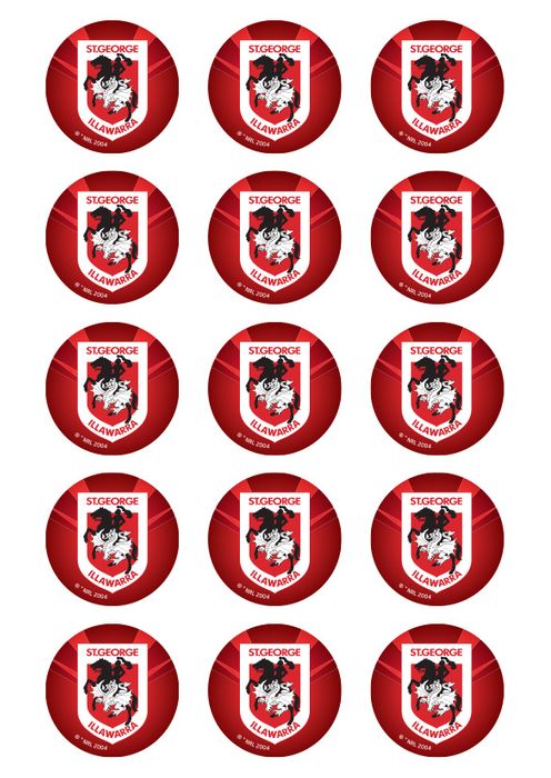NRL ST GEORGE ILLAWARRA DRAGONS 2 INCH/5CM CUPCAKE IMAGE SHEET - 15 PER SHEET