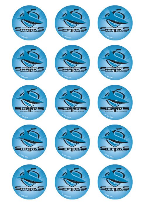 NRL CRONULLA SHARKS 2 INCH/5CM CUPCAKE IMAGE SHEET - 15 PER SHEET
