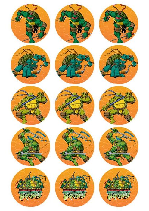 TEENAGE MUTANT NINJA TURTLES | CUPCAKE EDIBLE IMAGE SHEET | 2 INCH/5CM | 15 PER SHEET