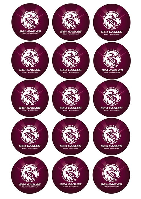 NRL MANLY WARRINGAH SEA EAGLES 2 INCH/5CM CUPCAKE IMAGE SHEET - 15 PER SHEET
