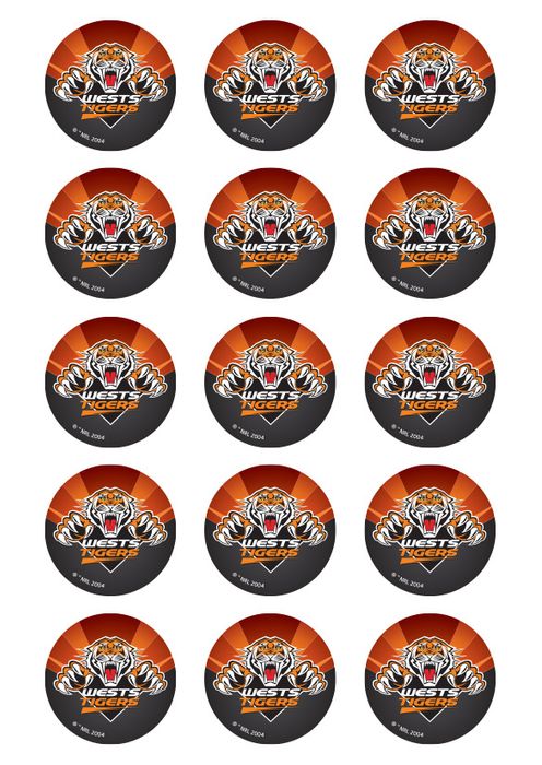 NRL WESTS TIGERS 2 INCH/5CM CUPCAKE IMAGE SHEET - 15 PER SHEET