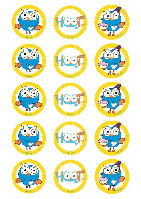 HOOT 2 INCH/5CM CUPCAKE IMAGE SHEET - 15 PER SHEET