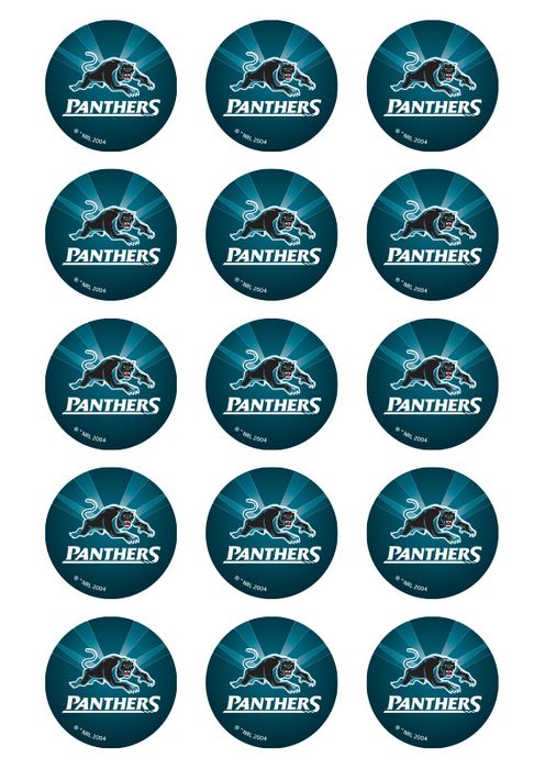 NRL PENRITH PANTHERS 2 INCH/5CM CUPCAKE IMAGE SHEET - 15 PER SHEET