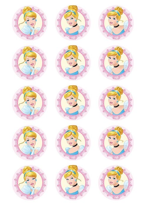DISNEY PRINCESS - CINDERELLA 2 INCH/5CM CUPCAKE IMAGE SHEET - 15 PER SHEET