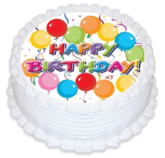 HAPPY BIRTHDAY BALLOONS ROUND EDIBLE ICING IMAGE - 6.3 INCH / 16CM
