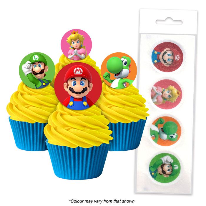 SUPER MARIO BROS | EDIBLE WAFER CUPCAKE TOPPERS | 16 PIECE PACK