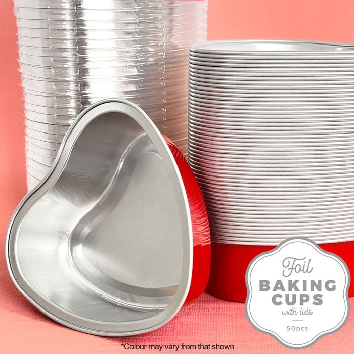 CAKE CRAFT | FOIL BAKING CUP WITH LID | HEART | RED | 50 PACK