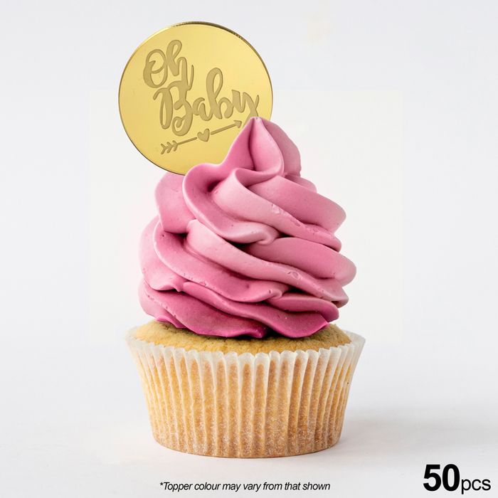 OH BABY ROUND | GOLD | MIRROR TOPPER | 50 PACK