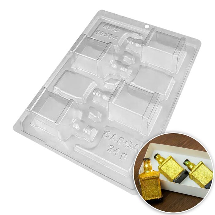 • Melt your chocolate and fill in the first part of the mould up to the visibly marked line.