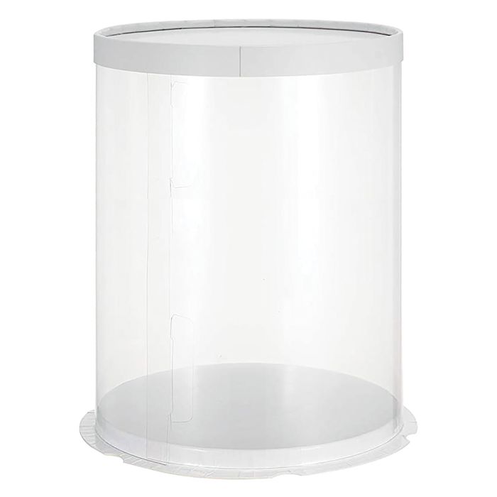 CLEAR TUBE CAKE BOX | 8X8X12 INCH | WHITE LID & BASE