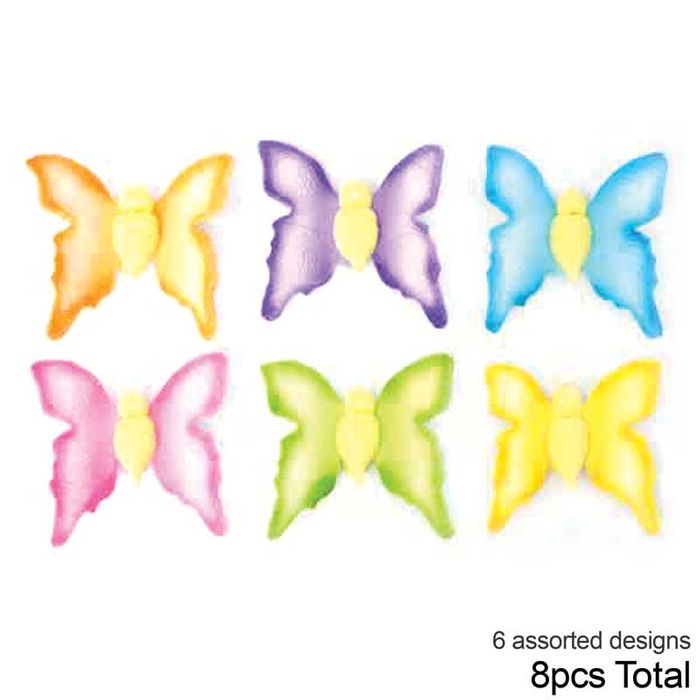 BUTTERFLY MEDIUM COLOURED | SUGAR DECORATIONS | BOX OF 8