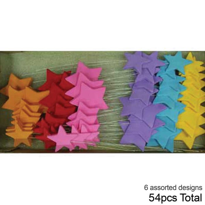 BRIGHT STARS ON WIRE BOX | SUGAR DECORATIONS | BOX OF 54