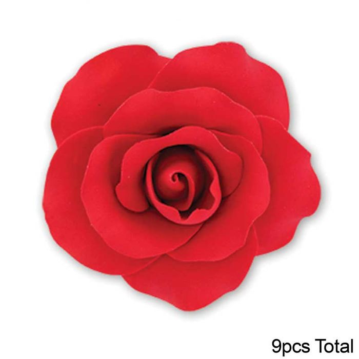 SINGLE ROSE LARGE RED | SUGAR FLOWERS | BOX OF 9